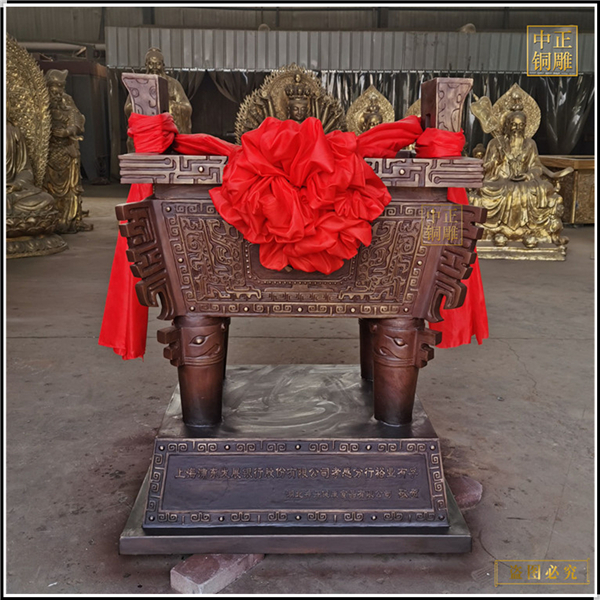銅鼎在早期使用來盛飯用的工具,后來演變成統(tǒng)治階級政權的象征,銅鼎的大小來分別權利的大小,銅鼎是我國重要的禮器。銅鼎是由夏商時期出土的文物,早期是有青銅器材料制作而成,現(xiàn)在的鼎大多都是仿照古代的銅鼎而制作出來的。銅鼎的用途很廣泛,在公司開業(yè),企業(yè)上市,是最佳贈品。