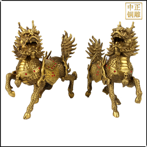 一直以來(lái)麒麟都是我國(guó)古代的祥瑞神獸之一,在風(fēng)水中,麒麟代表著吉利,標(biāo)志著高貴,主正財(cái),旺工作,催富貴,僻邪化煞,而銅為金屬,銅制的麒麟物件可抑制木的刑克,是風(fēng)水學(xué)中較為常見(jiàn)的風(fēng)水吉利物,有很好的風(fēng)水效果。所以趕快選購(gòu)一款適合自己的銅麒麟雕塑吧!